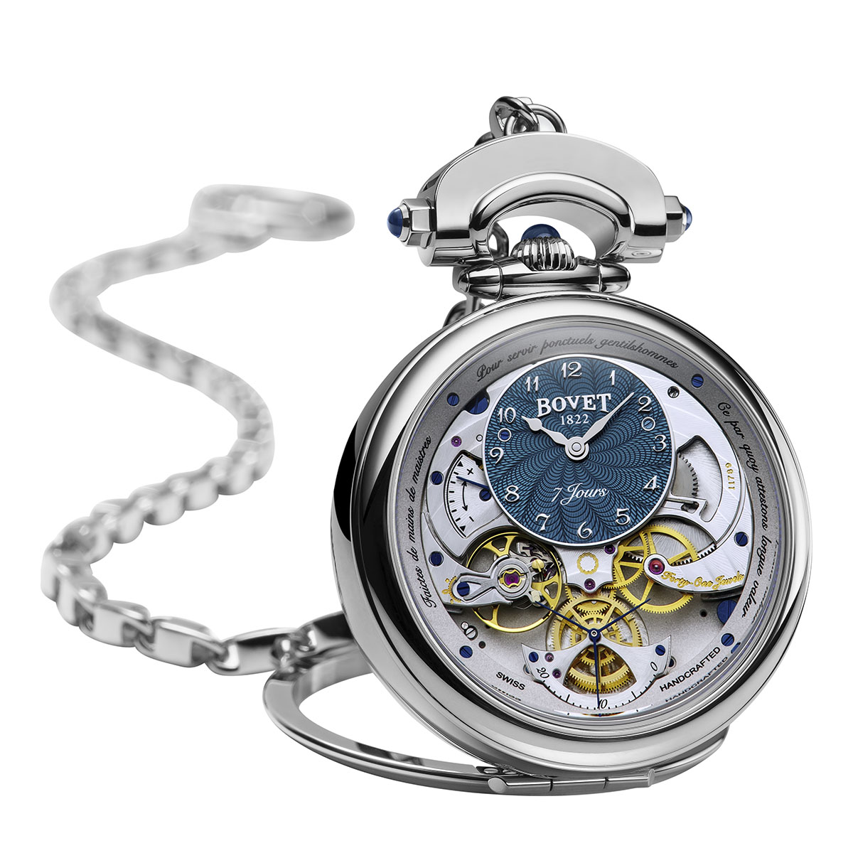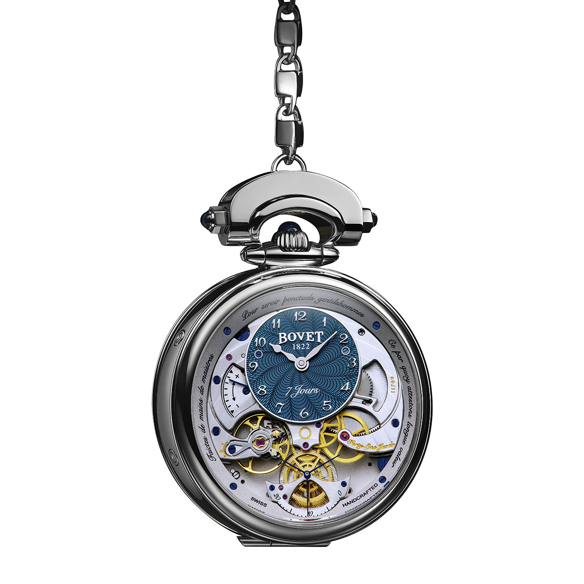 El Monsieur Bovet, que recrea en la muñeca el histórico reloj BOVET, se presenta en la caja convertible patentada Amadeo. Diseñado como un reloj que los hermanos estarían orgullosos de usar si estuvieran hoy en Suiza, de ahí el nombre «Monsieur Bovet». Este reloj es una elegante reinvención de los relojes de bolsillo finamente acabados por los que BOVET se hizo justificadamente famoso.