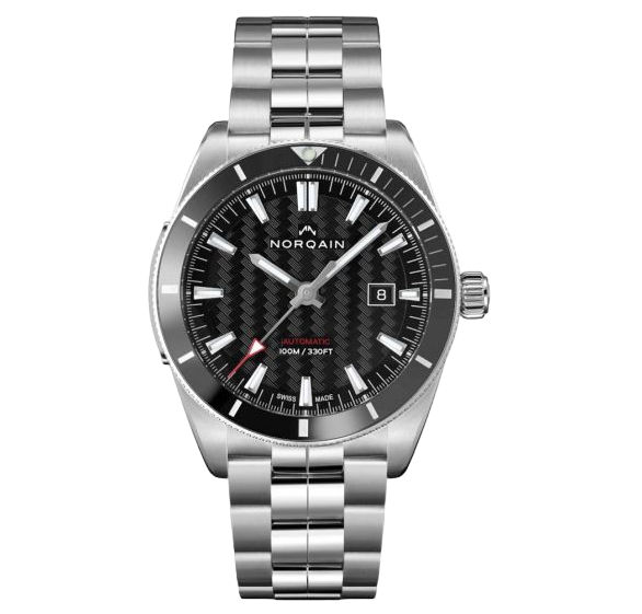 - La línea Adventure encarna la emoción de explorar y conquistar el paraíso de la naturaleza: los senderos, las cumbres y las mareas. La esfera con el motivo exclusivo de NORQAIN está inspirada en las montañas suizas.