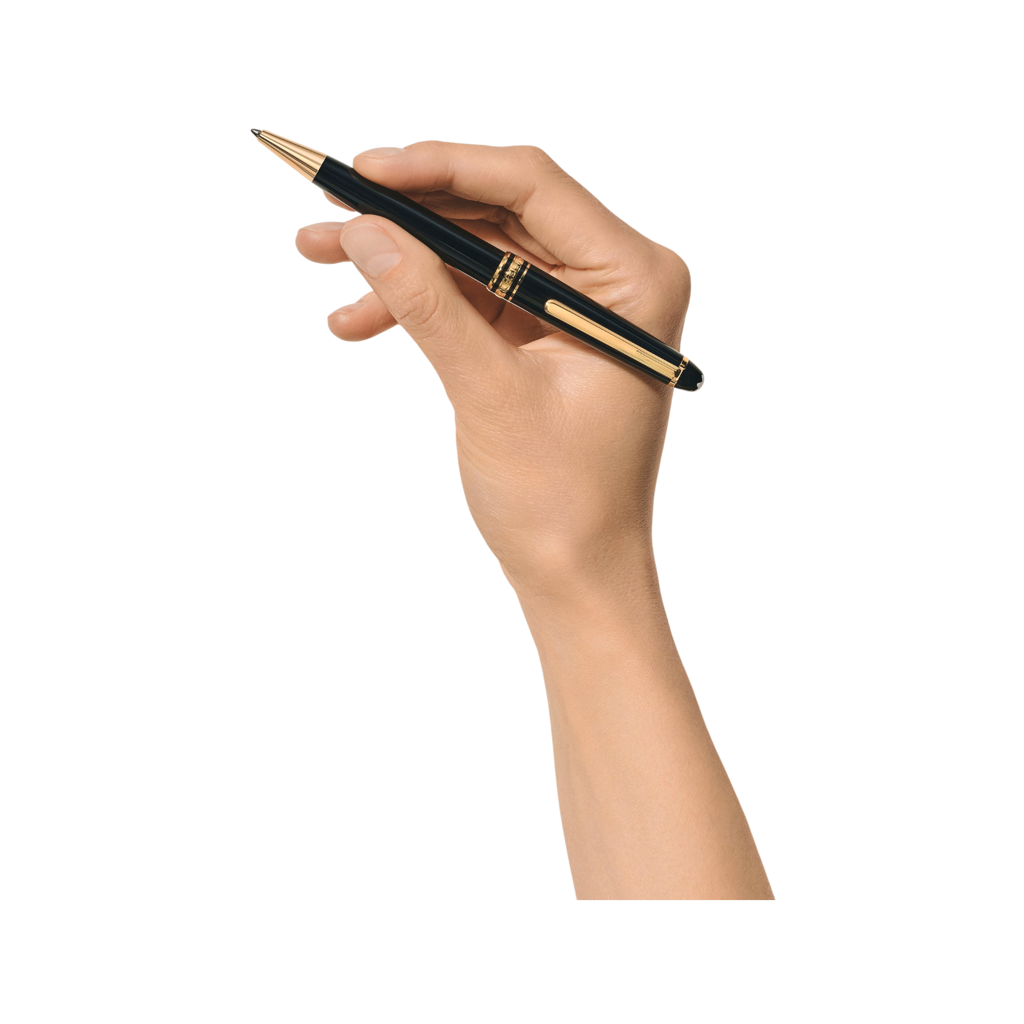 - La Meisterstück Classique en resina preciosa de color negro intenso con detalles bañados en oro y coronada por el emblema de la estrella blanca se convierte en un icono de diseño distintivo.