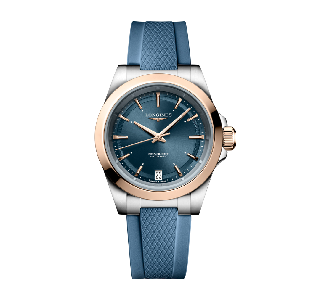 - Material: Acero inoxidable y oro rosa de 18 quilates.