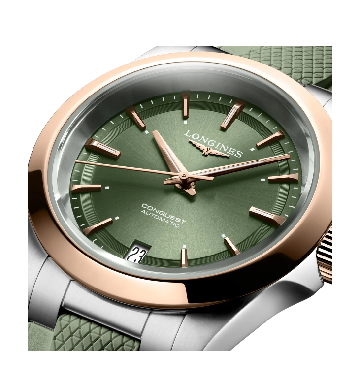 • Material: Acero inoxidable y oro rosa de 18 quilates.