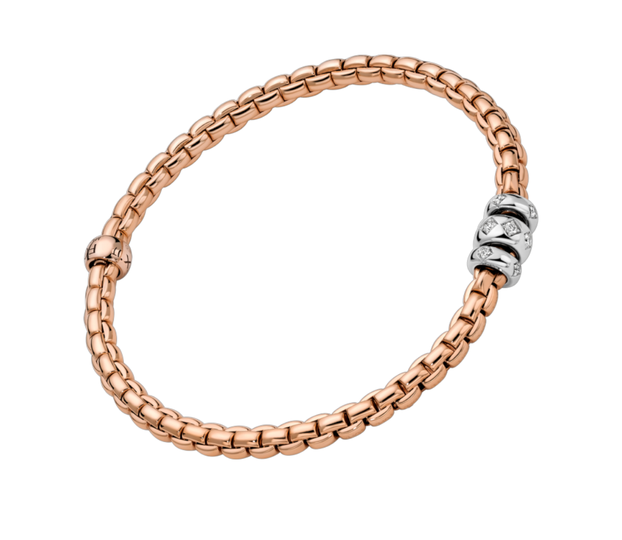 • Rondeles de oro y diamantes blancos engastados en rombos.