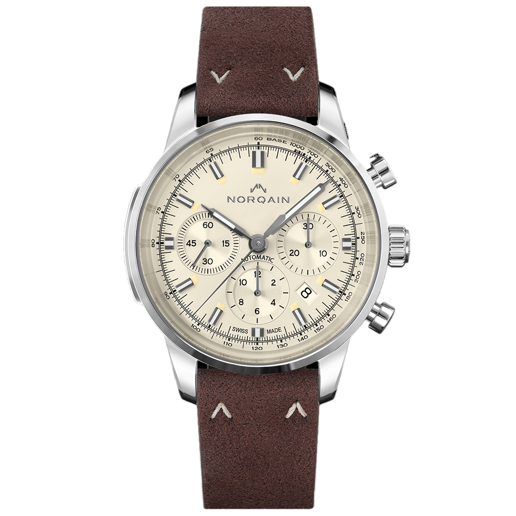 - Índices planos tallados en diamante, con impresión en blanco y marcadores Superluminova de radio antiguo.