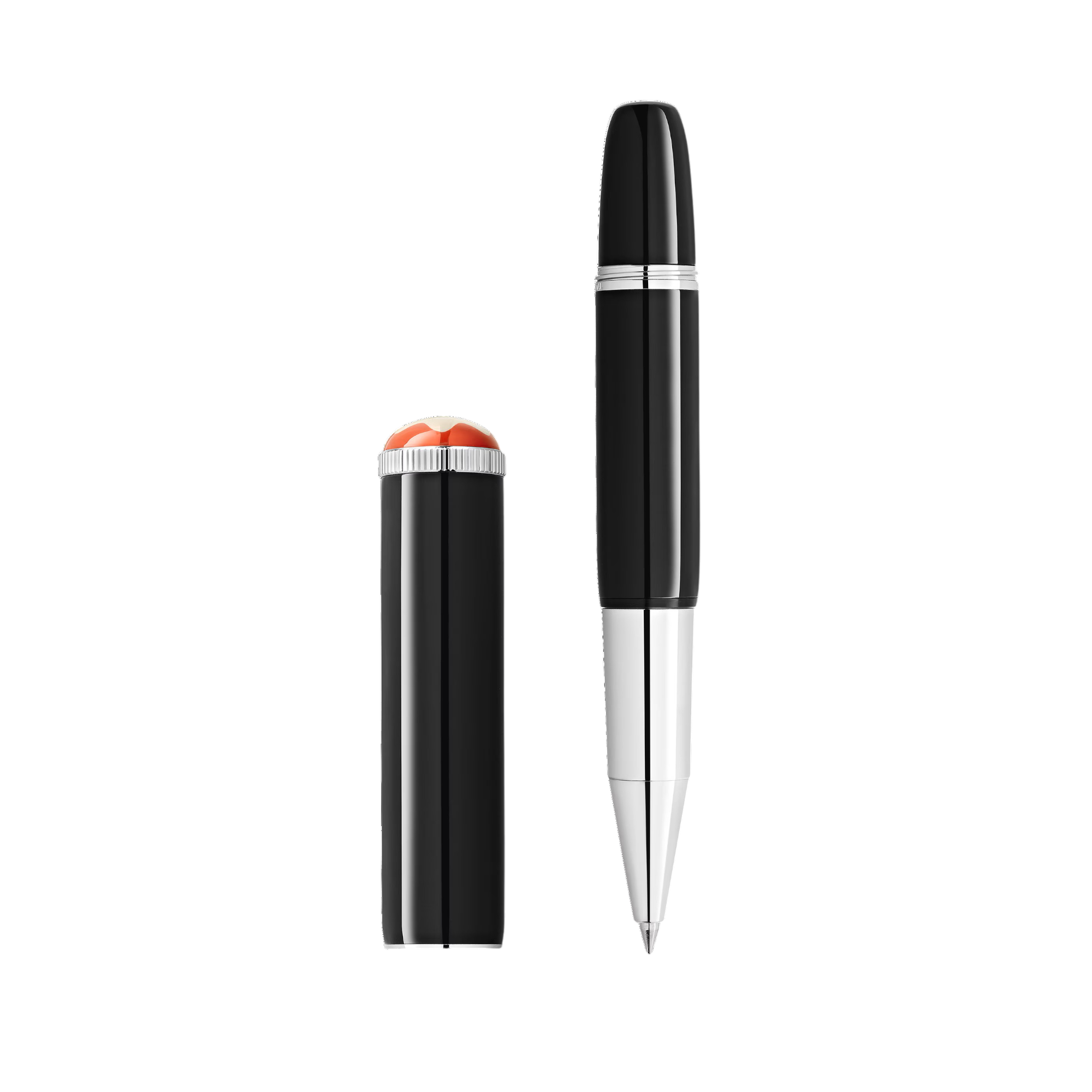 • Creada en laca preciosa negra y con detalles platinados, está coronada por un emblema Montblanc en resina preciosa rodeado del icónico tono coral de la colección Montblanc Rouge et Noir.