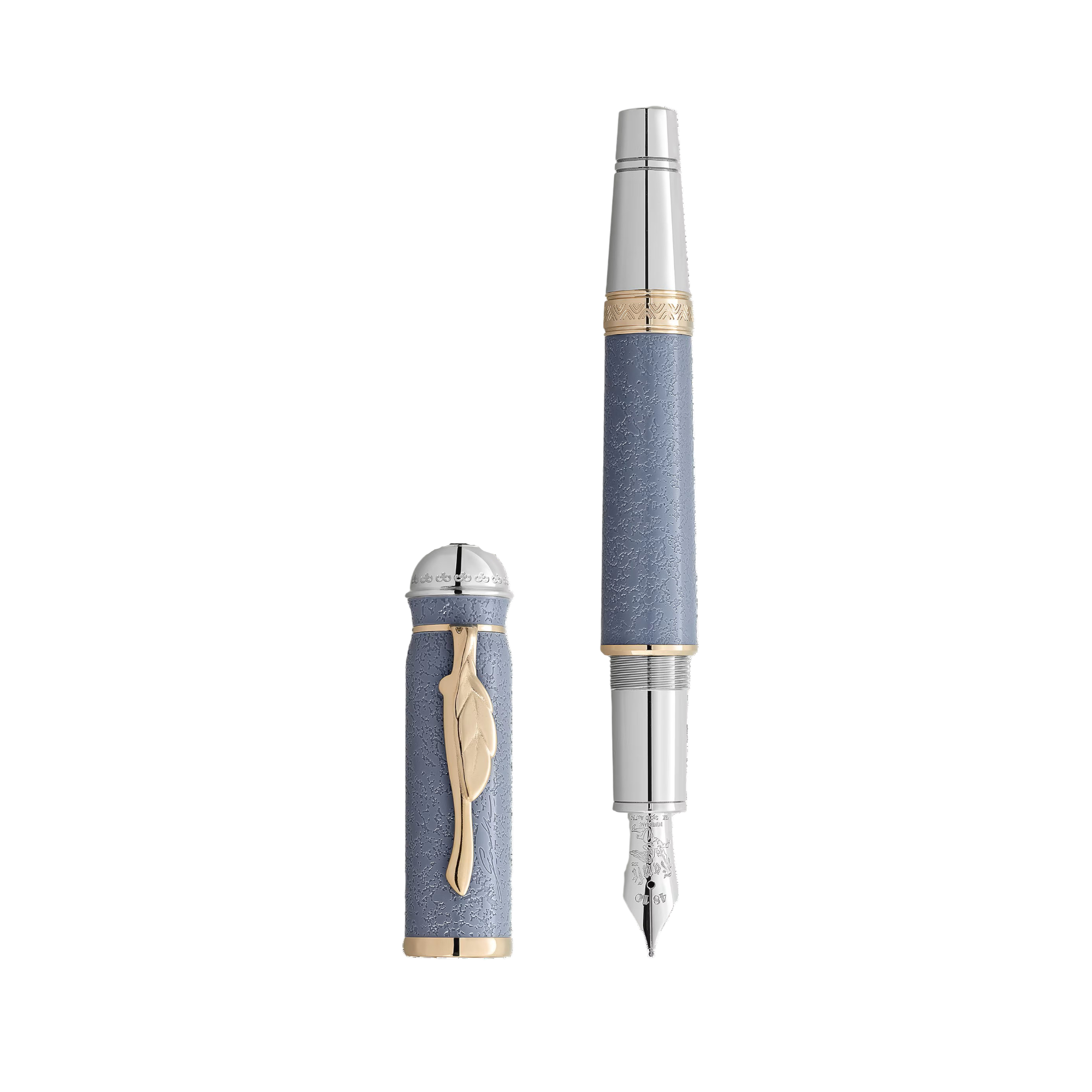• Clip en forma de hoja, chapado en oro característico.