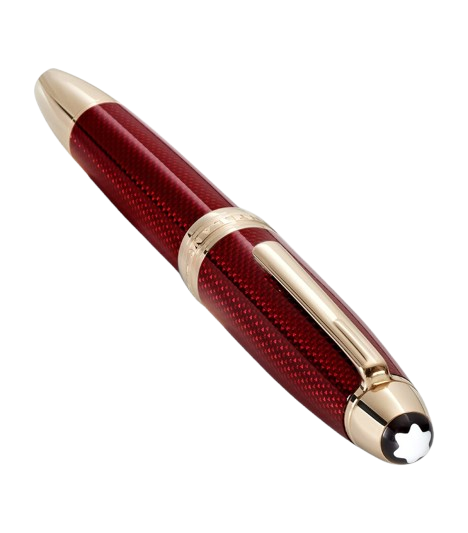 • Cañón de metal con patrón hexagonal grabado, recubierto de laca rojo burdeos translúcida.