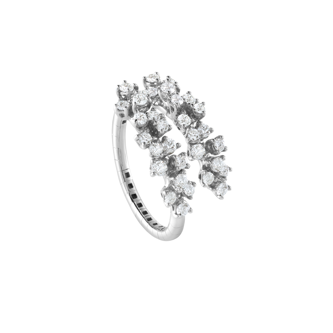 Mimosa nace de una técnica de engaste especial y única con un orden aparentemente aleatorio donde el tamaño de las piedras y su talla realzan la tridimensionalidad de las joyas, rindiendo un alegre homenaje a la esencia creativa de Damiani.