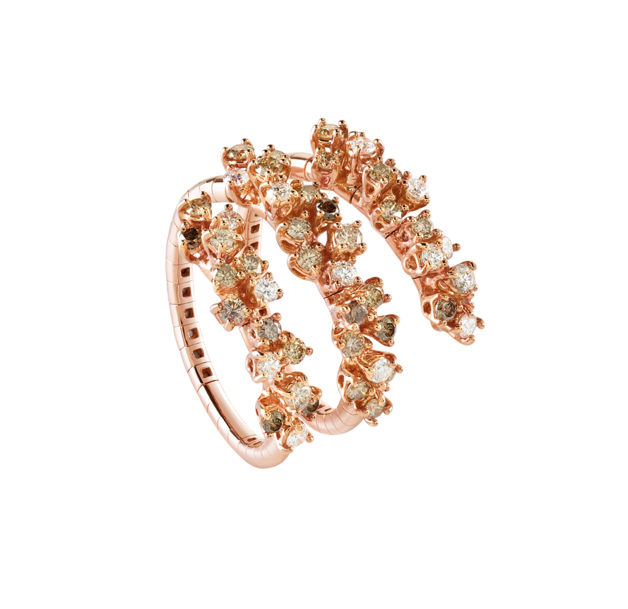 - Mimosa nace de una técnica de engaste especial y única con un orden aparentemente aleatorio donde el tamaño de las piedras y su talla realzan la tridimensionalidad de las joyas, rindiendo un alegre homenaje a la esencia creativa de Damiani.