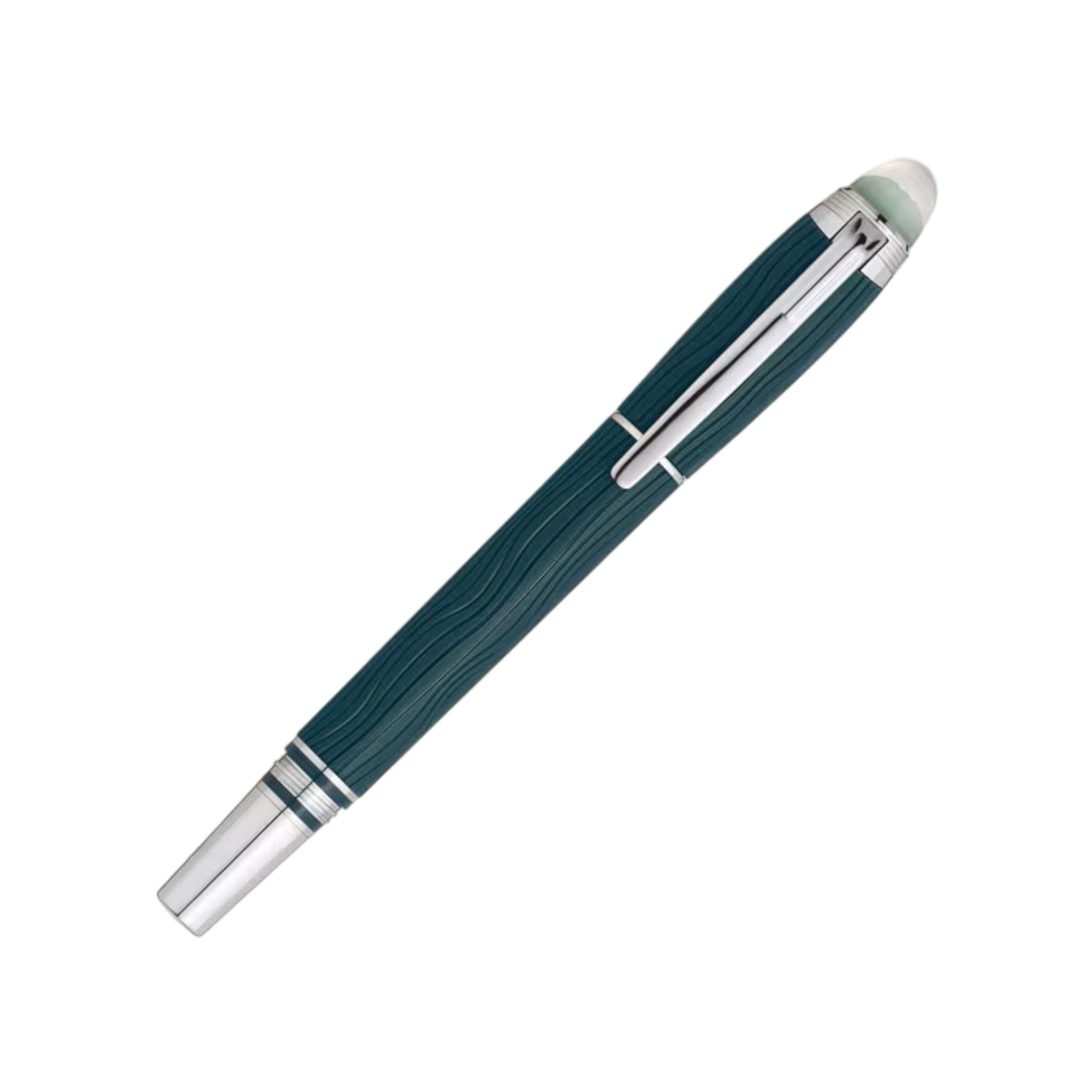 • La cúpula del capuchón está hecha de resina transparente y brilla con poca luz, evocando el encantador baile de las auroras del cielo nocturno. El patrón de ondas en la preciosa resina verde oscuro del capuchón y el cuerpo captura admirablemente el brillo espectral de las luces, y el acabado mate acentúa los delicados reflejos. Para el toque final, el Fineliner se complementa con sus detalles platino.