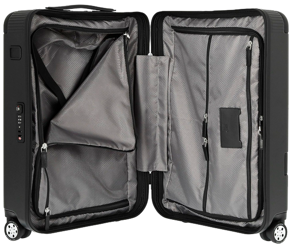 - Esta maleta compacta de policarbonato ligero con detalles de piel es fácil de usar y está equipada con cuatro ruedas
