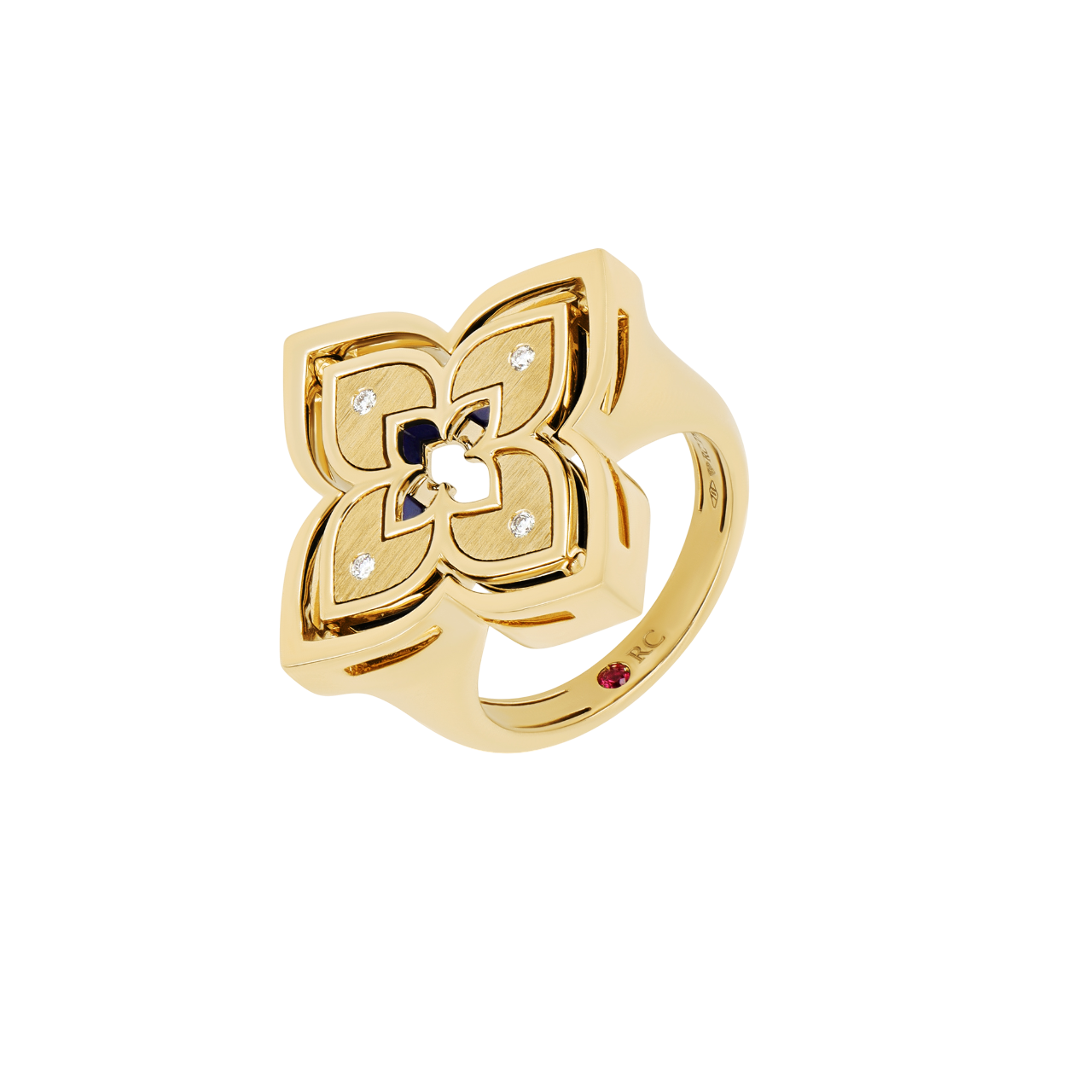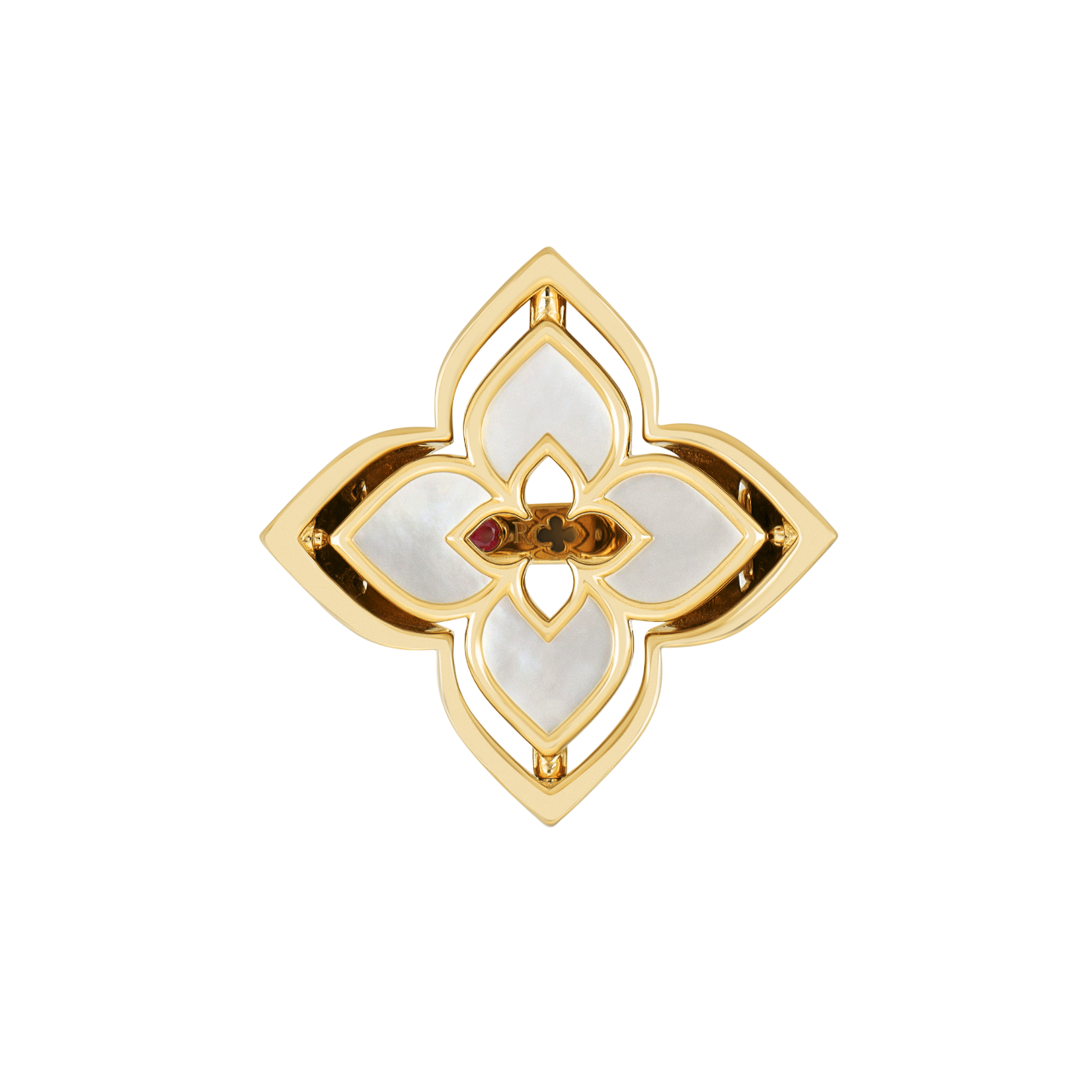 El nácar es la piedra característica de este anillo giratorio de flores