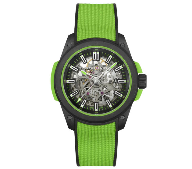 - El Wild ONE, fabricado con nuestro material patentado de fibra de carbono NORTEQ ® , ultrarresistente y ultraligero , es el reloj deportivo de alto rendimiento definitivo. Seis veces más ligero que el acero y 3,5 veces más ligero que el titanio, este Wild ONE ha sido diseñado en colaboración con Jean-Claude Biver, el equipo NORQAIN y los mejores proveedores suizos.