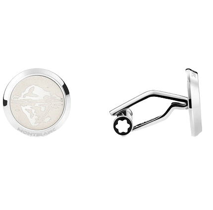 Yuntas de acero con un grabado que evoca el motivo de la tapa trasera del reloj Montblanc 1858 Ice Sea.