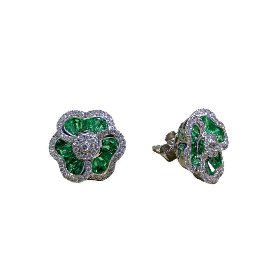 / Zarcillo Flor con Diamantes