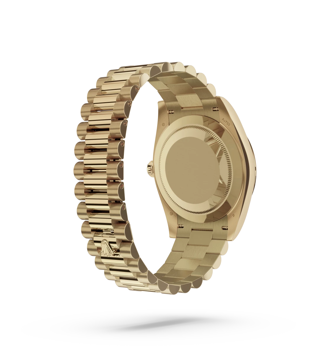 El bisel estriado de Rolex es una marca de distinción. En un principio, el diseño estriado del bisel Oyster tenía una función específica: servía para atornillar el bisel a la caja garantizando la hermeticidad del reloj. Además, era idéntico al acanalado del fondo de la caja, atornillado a ésta por la misma razón, mediante herramientas específicas de Rolex. Con el tiempo, el estriado se convirtió en un elemento puramente estético, una auténtica característica distintiva de Rolex. En la actualidad, el estriado es una marca de distinción, en oro en este DayDate 40.